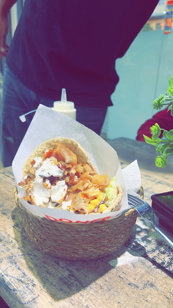 Kebab muy limpio y de calidad, te ponen bastante cantidad y además a domicilio te ponen extra las salsas en botecitos. Lo recomiendo 100%